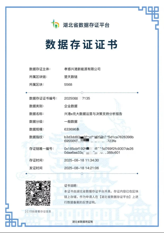 在小刀区政府服务和大数据局的指南下,该公司成功完成了一系列数据拥有的流程:首先,使用Hubei省数据流通和交易平台完成了“数字商品”认证,然后数据由技术证据存储库平台存储,最终成功注册了财产权注册。该证书清楚地指出,该公司有权处理,运行和使用相关数据,其合法所有权已消除了随后以市场为中心的运营(例如Transaksss)的障碍,这是数据资产,融资和股权投资。
